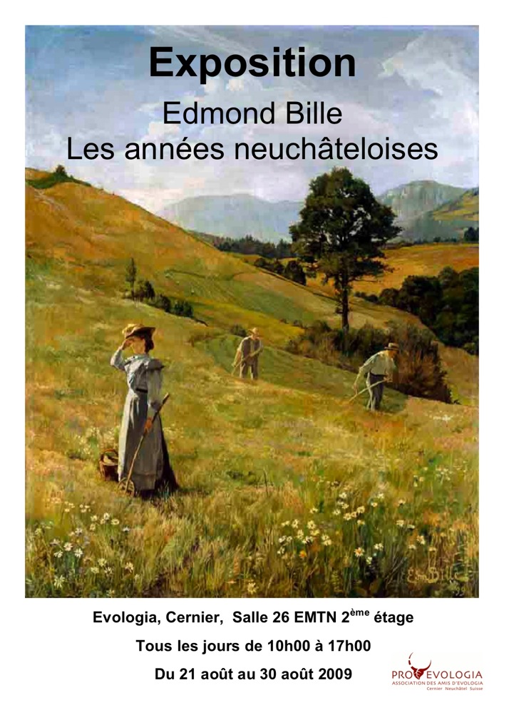 L’ensemble présenté à Evologia recouvre, à l’occasion du cinquantième anniversaire de la mort de l’artiste, les périodes “neuchâteloises” de cet enfant de Valangin qui grandit dans le Val de Ruz avant de se former à Genève et Paris, de découvrir le Valais et de s’y installer. L’originalité de cette présentation réside dans le fait que l’artiste s’est fait connaître pour son œuvre inspiré du Valais. L’histoire de l’art a oublié ses années de formation où il est déjà, enfant doué, en possession d’une belle maîtrise du dessin. Il le doit aux innombrables exercices qu’il s’impose en multipliant les croquis d’après nature. En cette fin de 19e siècle, le monde rural de la vallée est en plein essor. Ernest Bille, le père de l’artiste en herbe, y joue un rôle important, allant jusqu’à assumer la direction de l’Ecole cantonale d’agriculture de Cernier de 1897 à 1910. Il est également actif au sein du comité de la Fédération agricole romande.