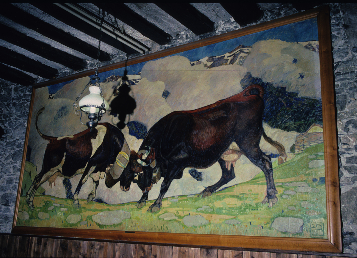 « Combat de reines » (ou « Combat de vaches »), Edmond Bille, 1913. Exposition à l’Hôtel de Ville de la ville de Sierre.